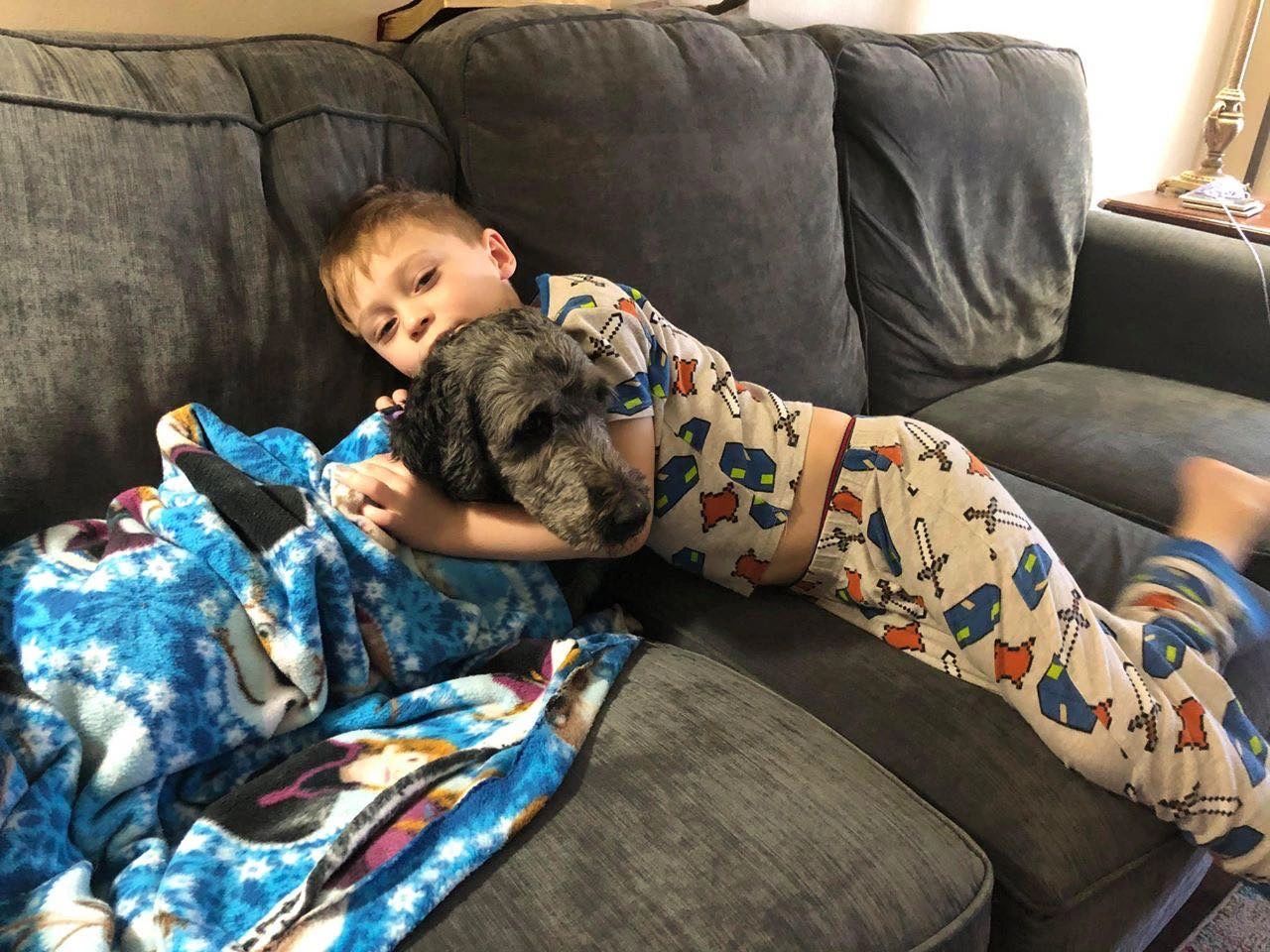She gets to spend her days sleeping on the couch and playing with her son Dexter!
